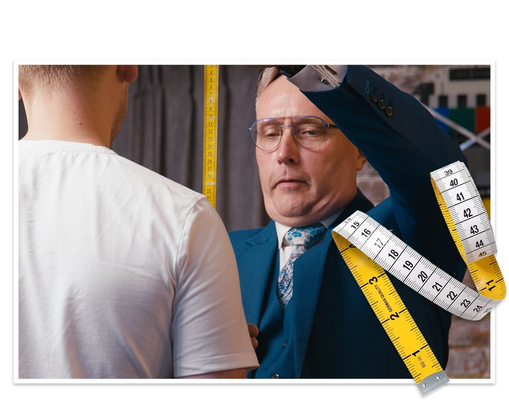 Om het pak zo mooi mogelijk te laten aansluiten, meten we alles secuur op. Zo weten we precies wat we aan onze kleermaker door moeten geven.