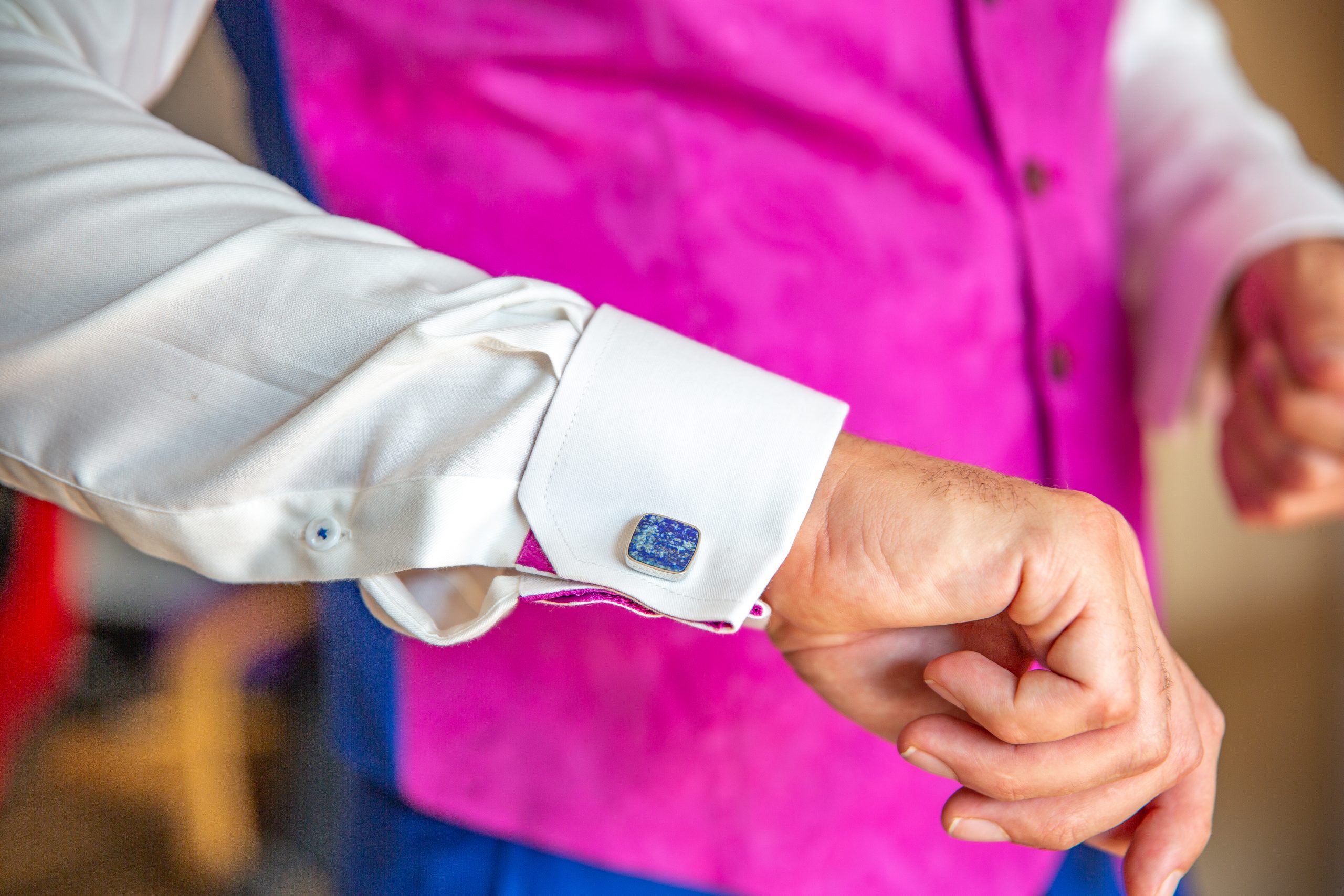 We stellen een prachtig trouwkostuum met je samen, in een stof, patroon en kleur die bij je past. Misschien heb je wel een lapje van de stof van de trouwjurk bij je, zodat we daar ook bij aan kunnen sluiten. Maar heel graag gaan we daarna nog een stapje verder. We vragen je of je extra stof wilt bestellen voor de corsages, het bloemenlint of het ringkussen.