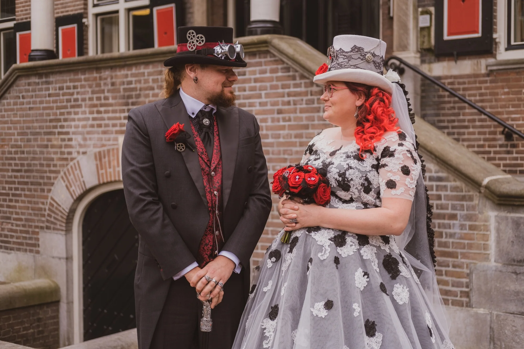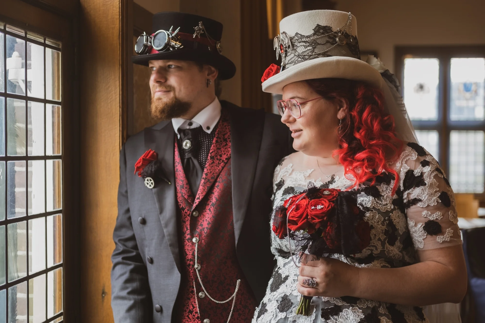 Een steampunk maatkostuum of trouwpak