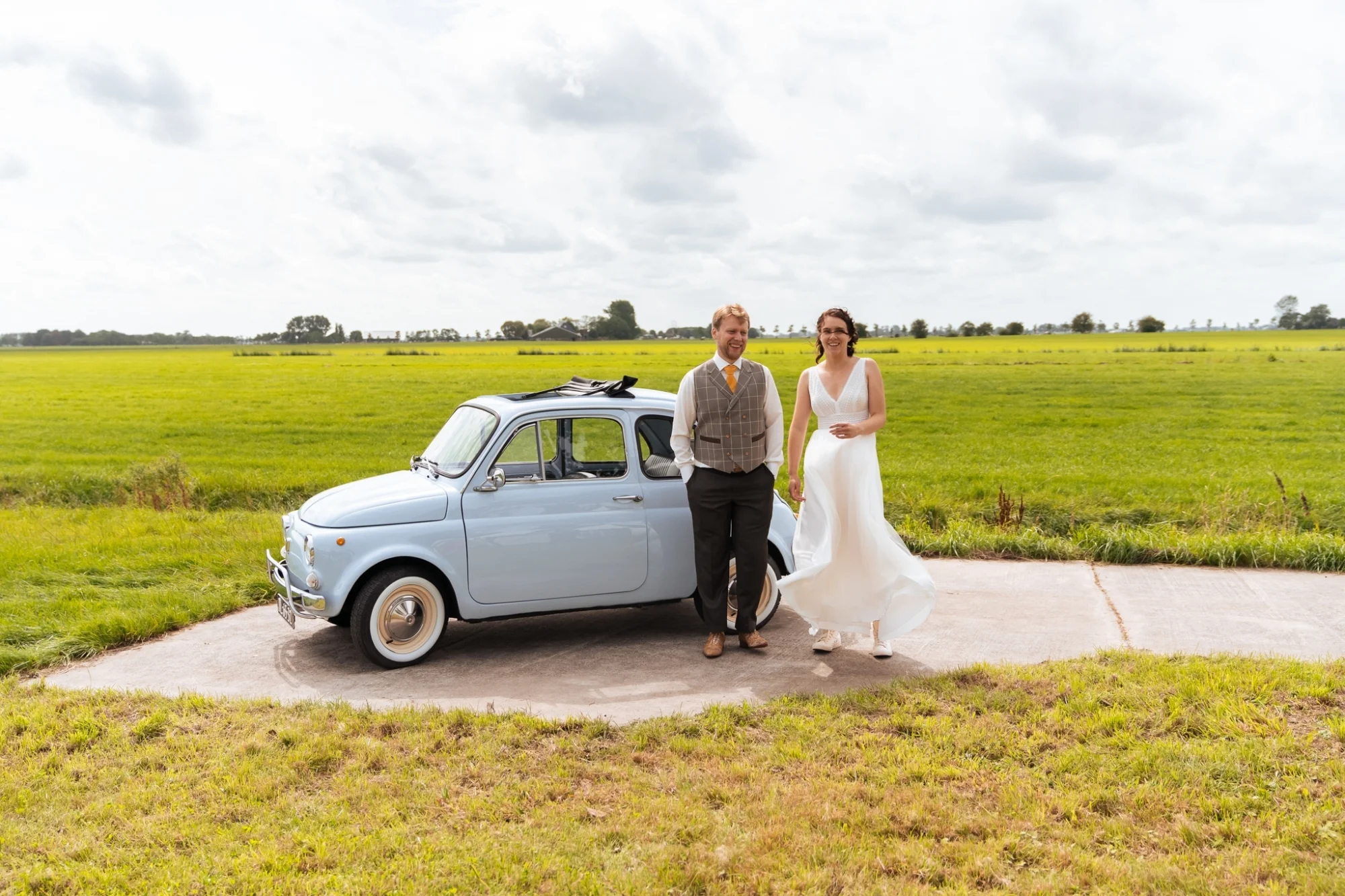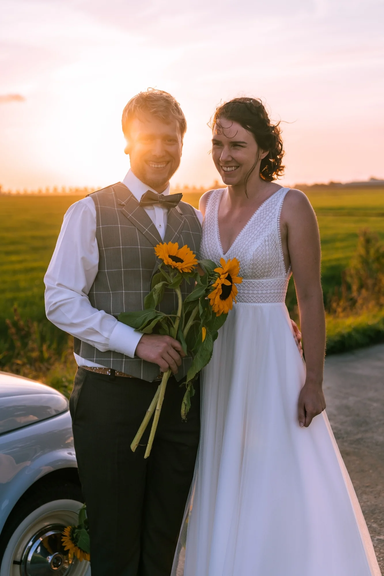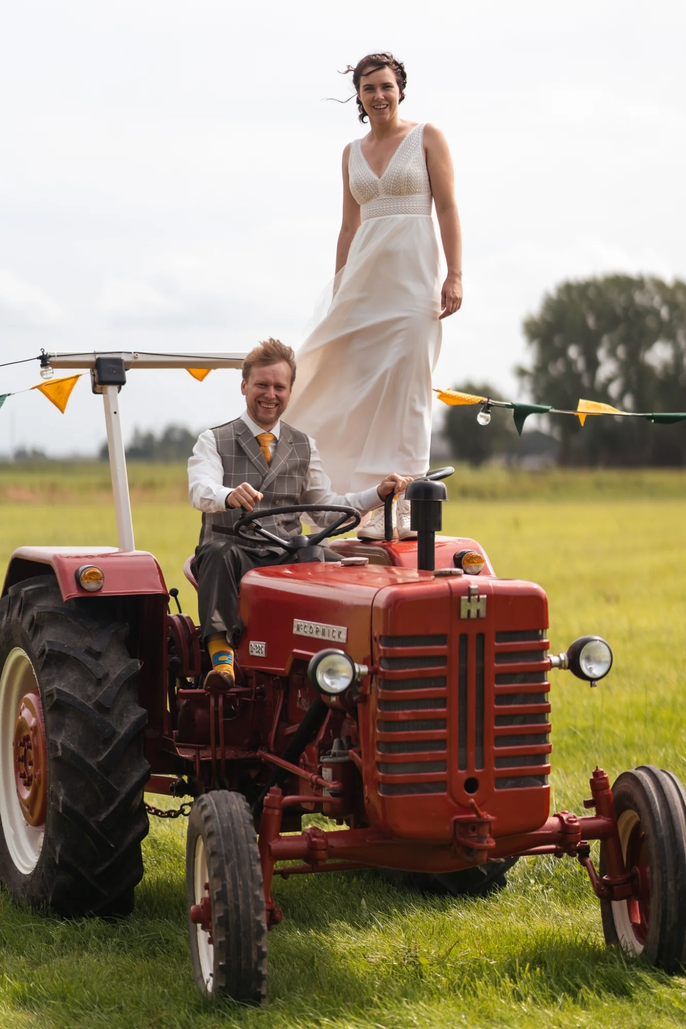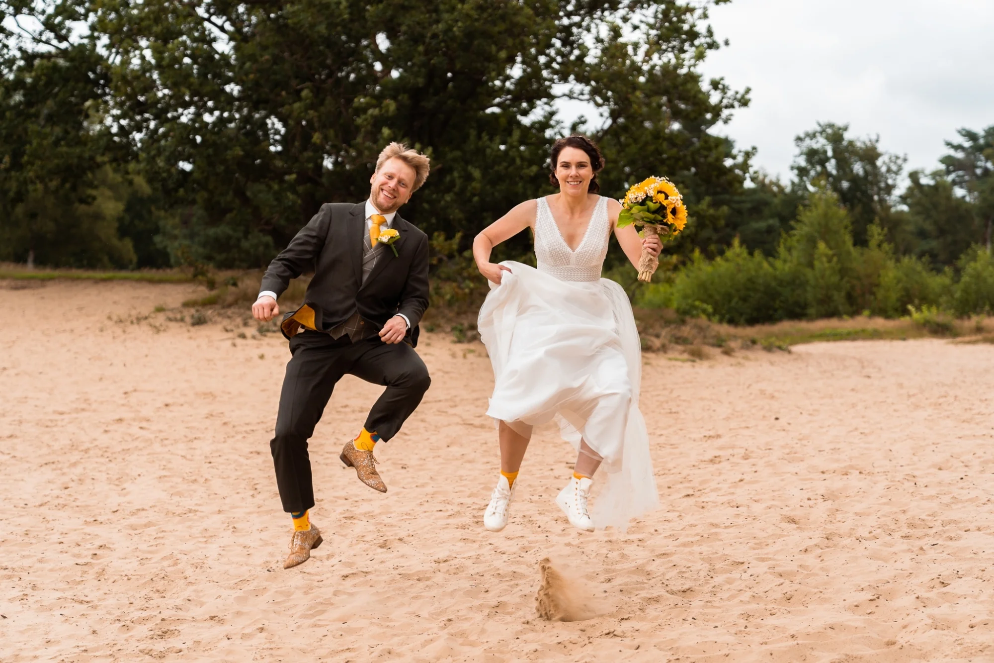 Je kunt als bruidegom voor het officiële gedeelte een stropdas kiezen, om tijdens het feest verrassend uit de hoek te komen met een flitsende vlinderstrik.