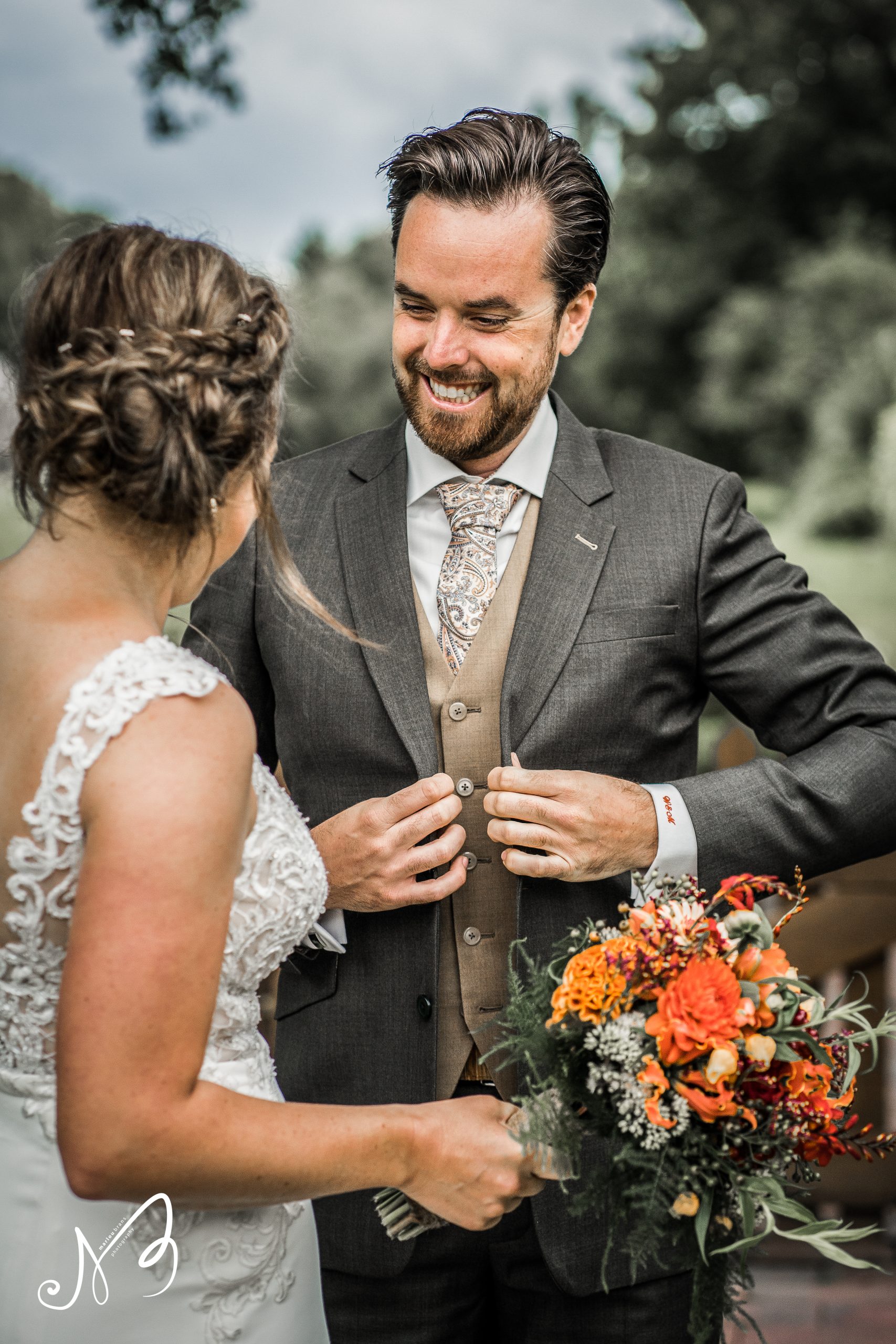 Je kleedt je voor je trouwdag op je mooist en mag je echt onderscheiden van anderen. Jij en je geliefde zijn het stralende middelpunt. Om dat te onderstrepen kiezen sommige mannen voor bretels. Als ze dan tijdens het feest hun jasje uitdoen, hebben ze op de andere gasten twee streepjes (vaak met een strikje) voor. Maar meestal maken bruidegoms de keuze voor een gilet. Onder het jasje staat dat extra gekleed, en als het jasje uit is zie je er net even wat feestelijker uit.