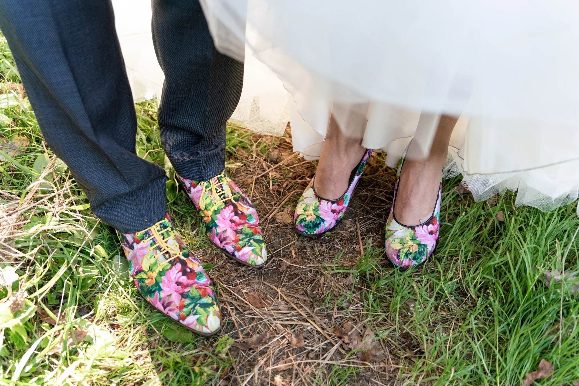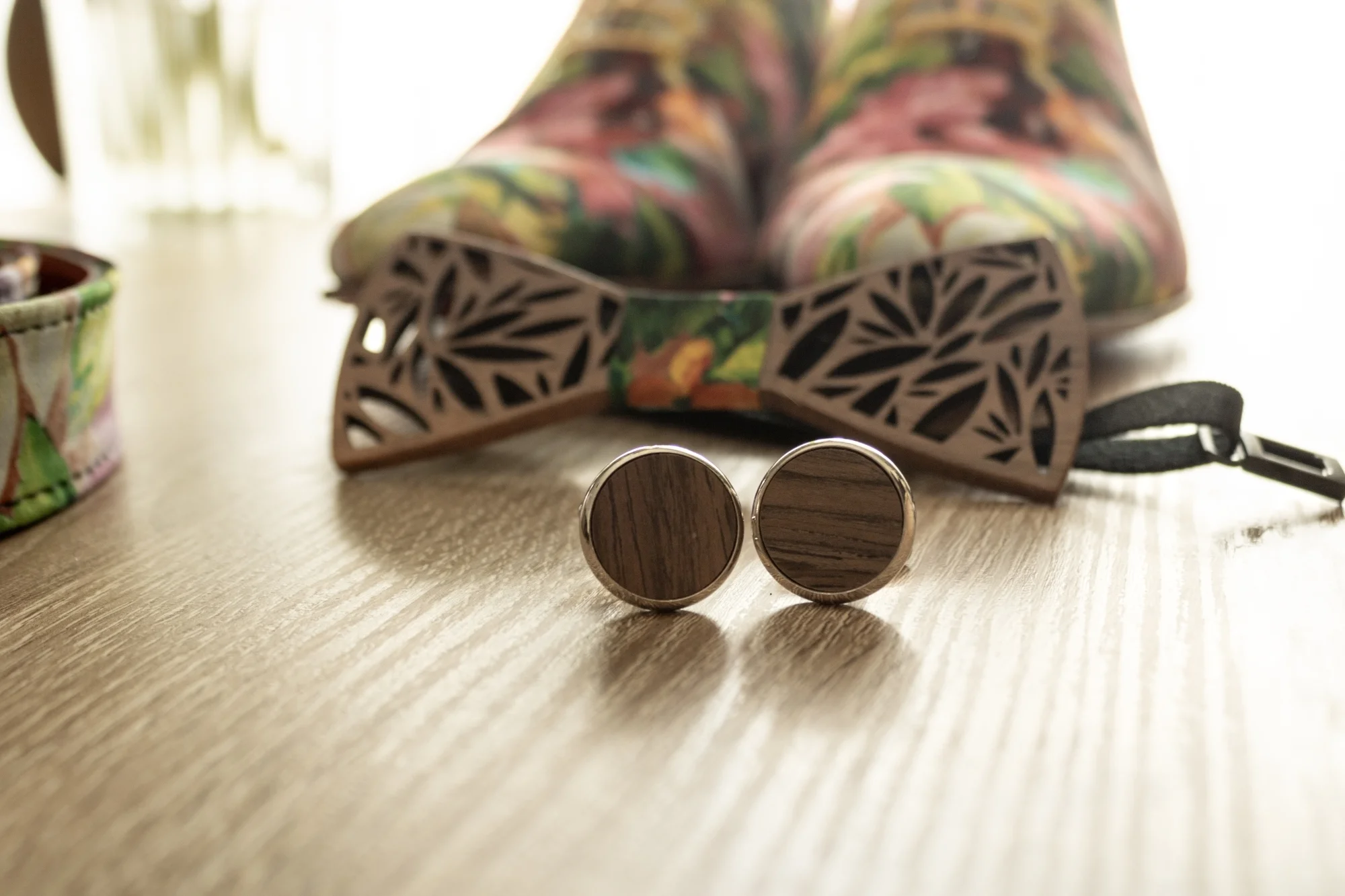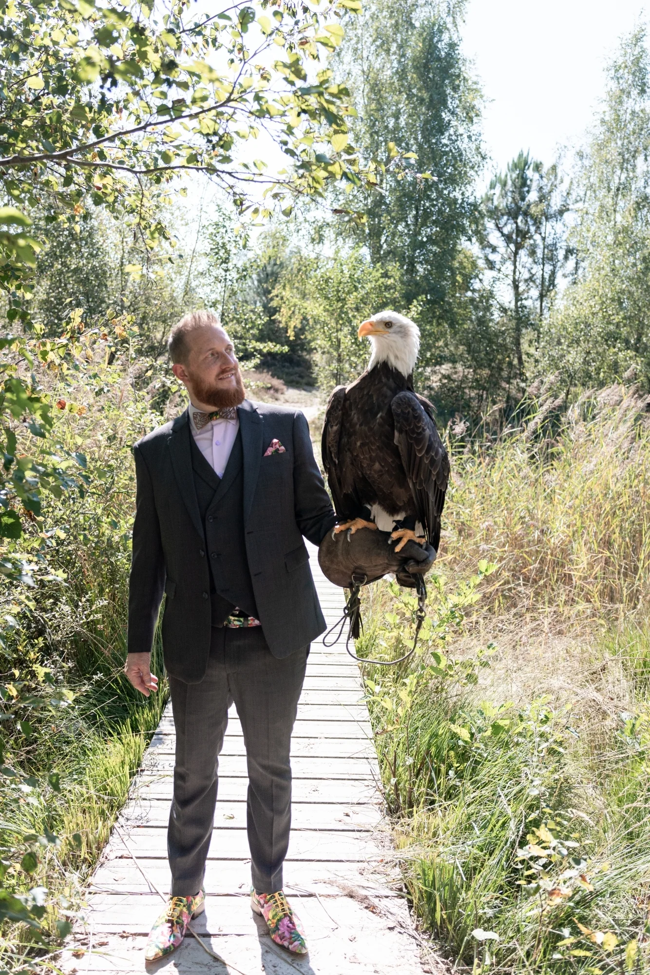 Stropdas en vestje in de stof van de schoenen