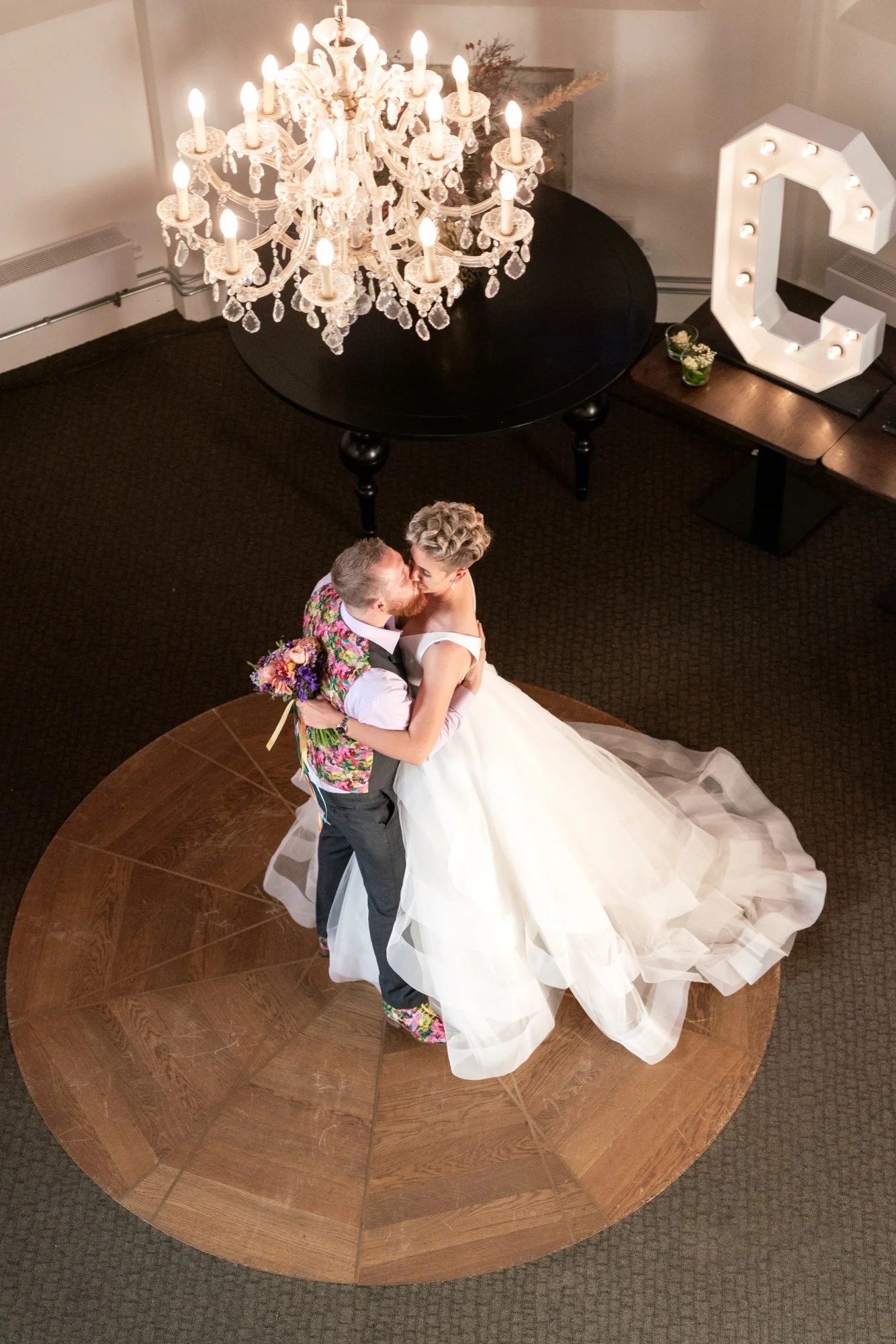 We houden bij De Stijlmeester van unieke maatkostuums, persoonlijk tot in de kleinste details. Daarom bieden we je talloze opties met voeringstoffen in alle kleuren en de meest bijzondere patronen. Maar we deden pas echt een rondedansje toen we de mogelijkheid kregen om jou je eigen voering te laten ontwerpen. Bruidegom Kaj liet het uitvoeren met elementen van de door hemzelf ontworpen trouwkaart erop. En wat voor de voering geldt, geldt ook voor gilet en stropdas.