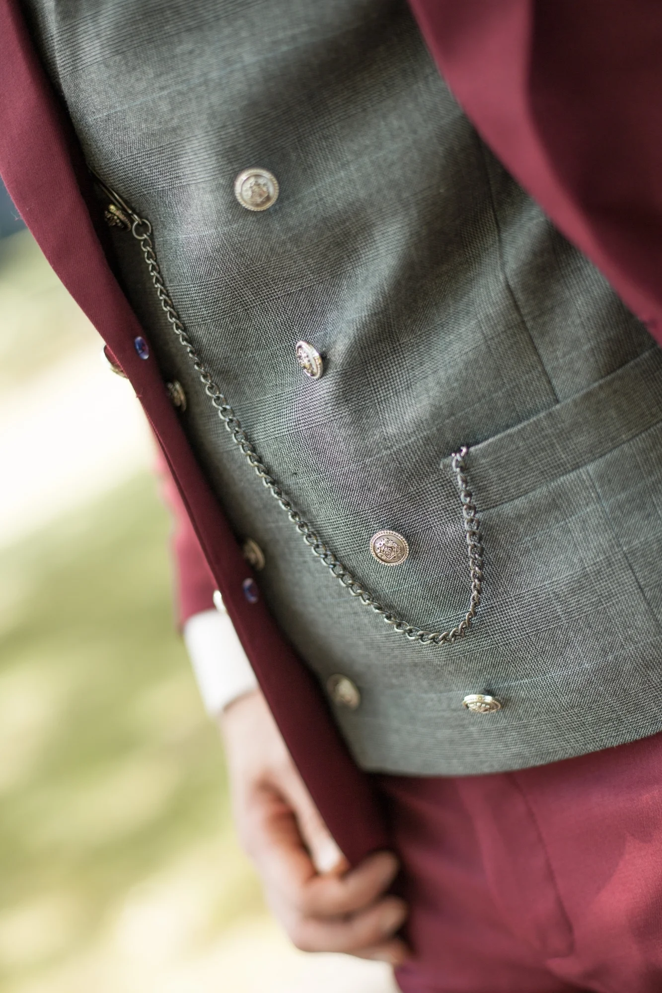 Zilveren knopen schitterend op je trouwpak
