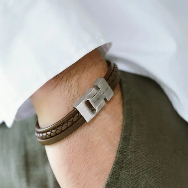 De "Casual Cole" armband is een toonbeeld van minimalistisch design en hoogwaardig vakmanschap. Hij bevat drie verschillende stijlen van zacht, echt lederen koorden, samengebonden door een slanke roestvrijstalen schuiver, wat zorgt voor een comfortabele pasvorm. De kenmerkende roestvrijstalen sluiting, gegraveerd met het STEEL & BARNETT logo, biedt een veilige sluiting en getuigt van de aandacht voor detail van het merk. Perfect voor de man die houdt van een strakke, verzorgde look gecombineerd met de tijdloze charme van leer.