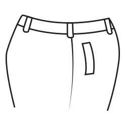 Het is wat met die zakken: ze zijn er voor de sier, maar moeten ook weer niet te veel opvallen. Aan de achterkant loopt de zak van je pantalon trouwens parallel aan de broeksband.