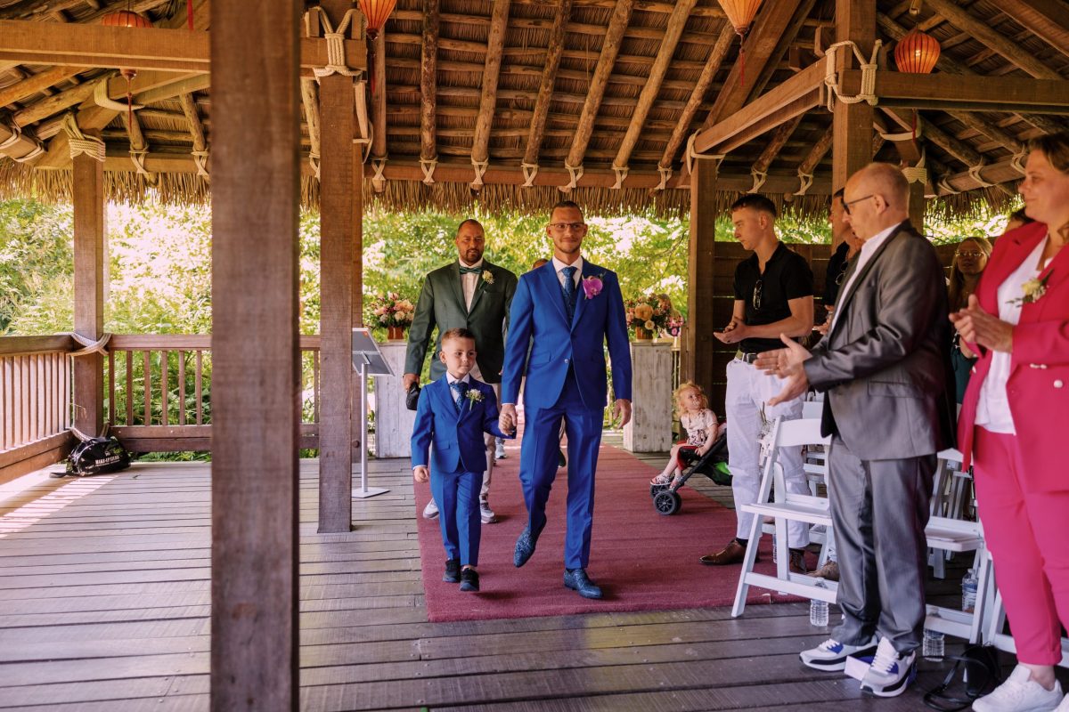 Je stemt je trouwpak natuurlijk af op de kleding van je partner. Je kunt nog een stap verder gaan, en met je kleding laten zien dat jij ook hoort bij de mensen die het dichtste bij je staan. Of liever andersom: zij laten zien dat ze bij jou horen en met jou meevieren.