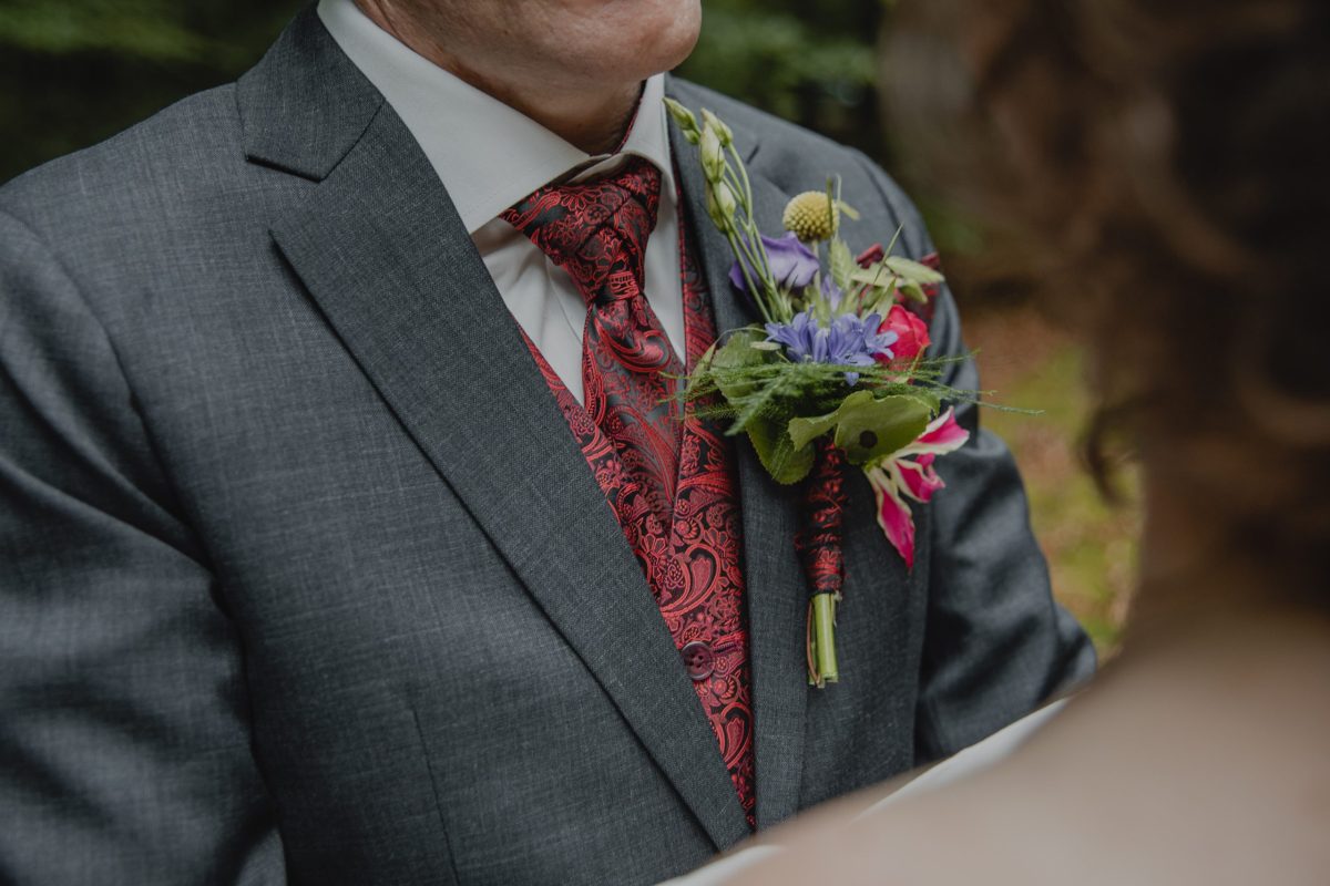 Je kunt uiteraard ook je mensen voorzien van een das, strikje of pochet in bijpassende stof. Neem ze mee naar De Stijlmeester of bestel extra stof bij je kostuum.